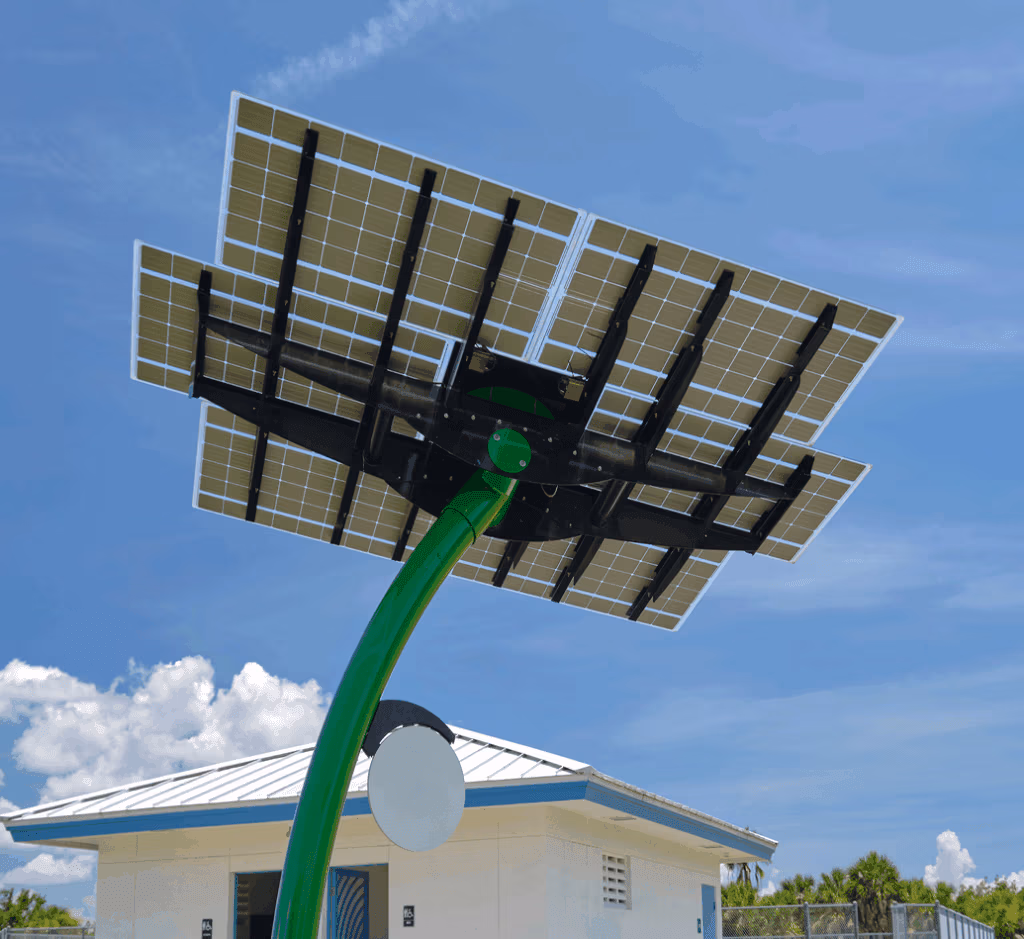 Engineered to adjust angle and maximize sunlight exposure in large-scale open field installations.